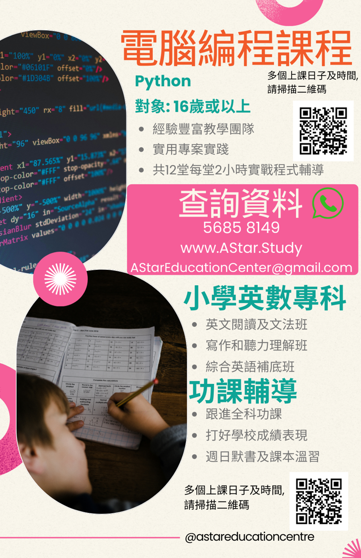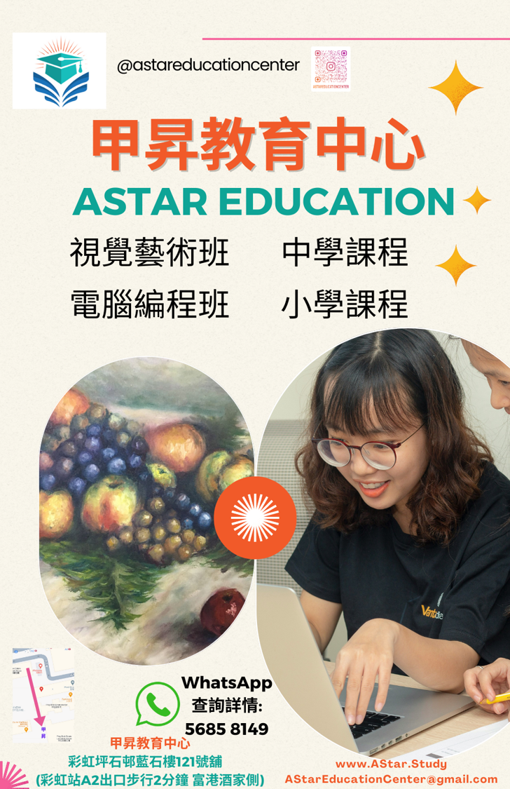 甲昇教學中心 (AStar Education Center) - 由一群資深的老師團隊創辦,教學經驗十數載。專注為本地中、小學生提供中文補習、英文補習、數學補習課程。課程均由擁有豐富經驗的補習名師設計及執教,其中大部分名師更具備超過10年專科補習經驗。