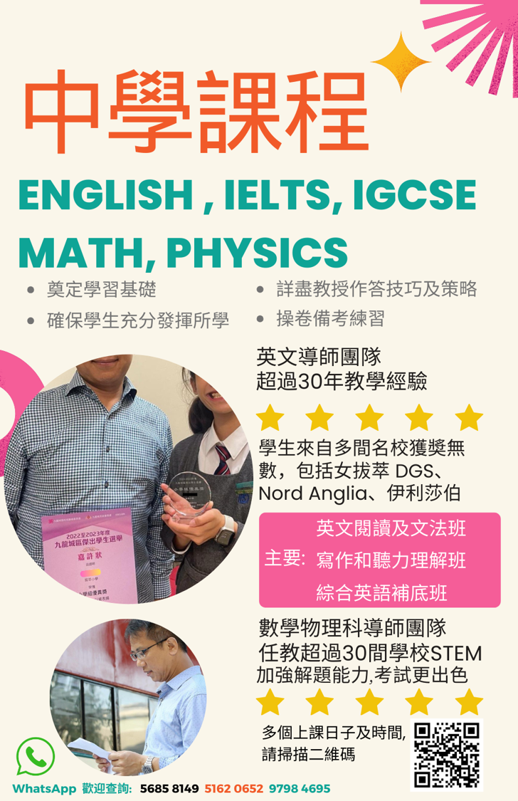 課程由擁有豐富經驗嘅補習老師設計及執教,大部分老師更具備超過10年補習經驗,學術背景超卓,每年教授學生人數逾千名。